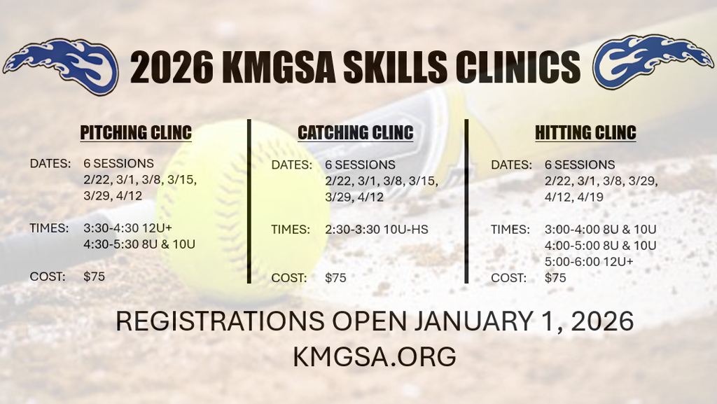 KMGSA offers youth fastpitch softball players an opportunity to play and compete with league play (Southeast Fastpitch Conference) and tournaments.
